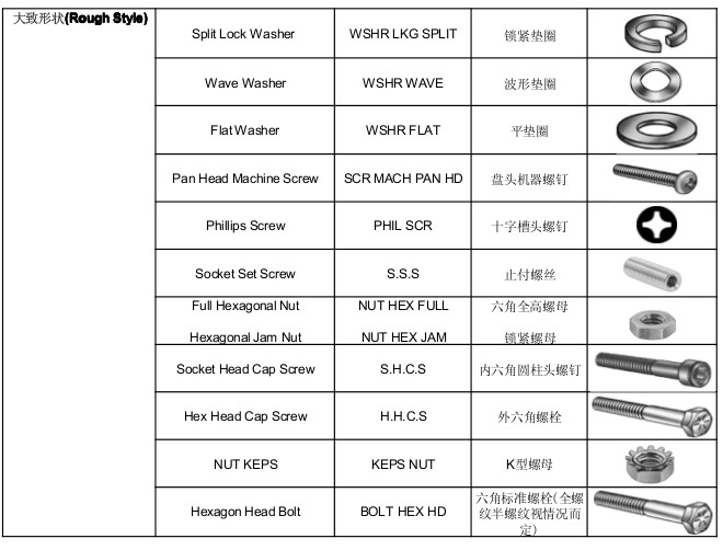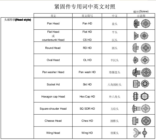 紧固件专用词中英文对照