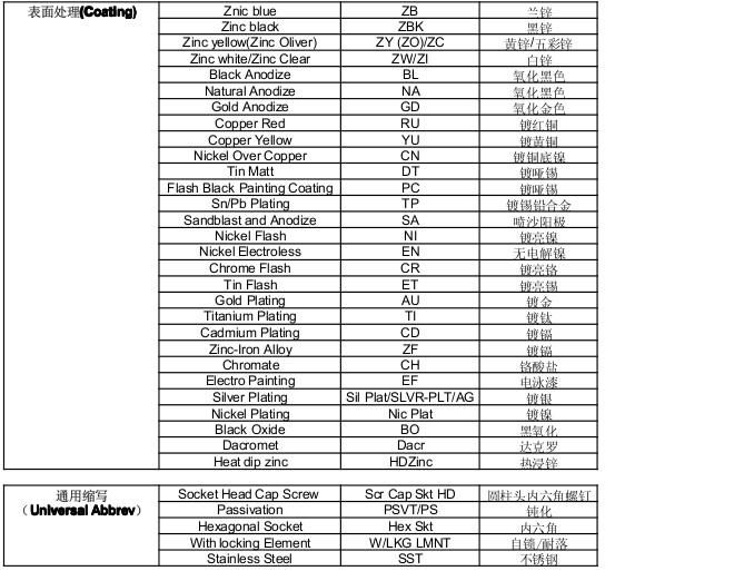 标准件产品中德国标准、国际标准和中国标准的中英文对照表
